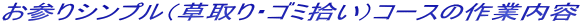 | お参りは、自分で行くので、事前に草取り・ゴミ拾いをしてほしいという方は 作業内容(お参りトータルコースの@ABGHのみの作業) |